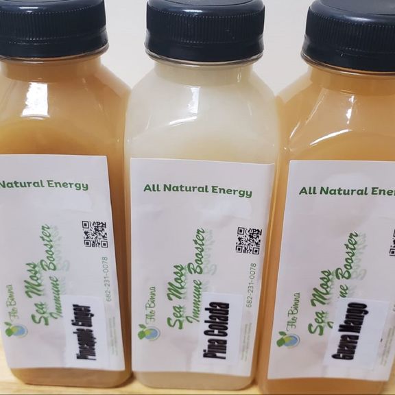 | Sea Moss Juice Flavors 1 | Apple + Peach, Guava + Mango, Lemonade, Mango, Pina Colada, Pineapple + Ginger, Pineapple + Peach, SourSop, Strawberry + Apple, Strawberry + Banana |