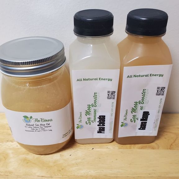| Sea Moss Juice Flavors 2 | Apple + Peach, Guava + Mango, Lemonade, Mango, Pina colada, Pineapple + Ginger, Pineapple + Peach, Soursop, Strawberry + Apple, Strawberry + Banana |
